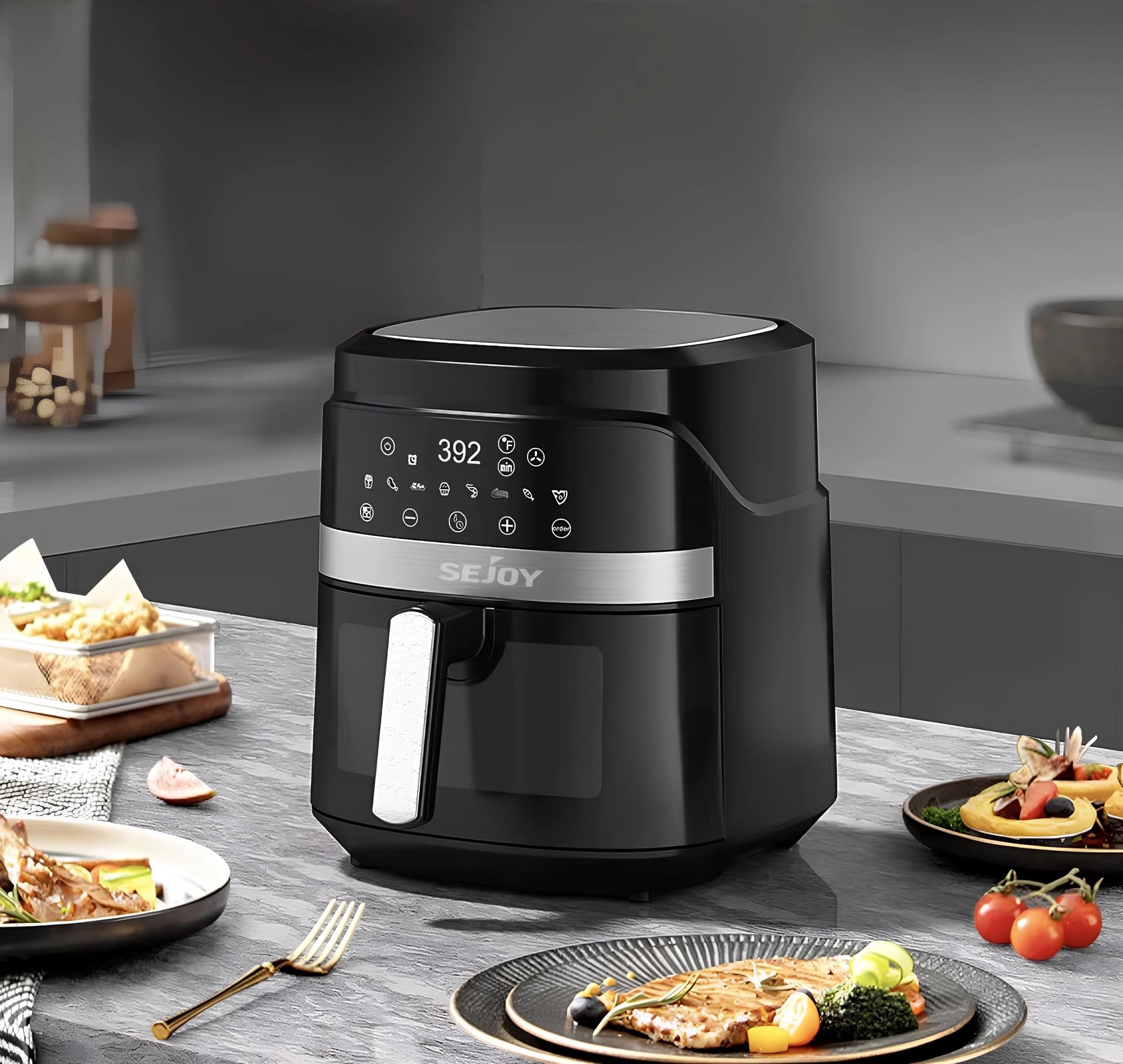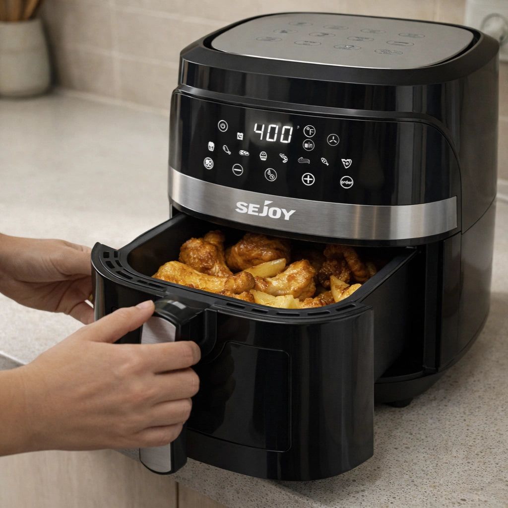The Sejoy AirFlow 360™ Air Fryer features an advanced 2025 heat circulation system